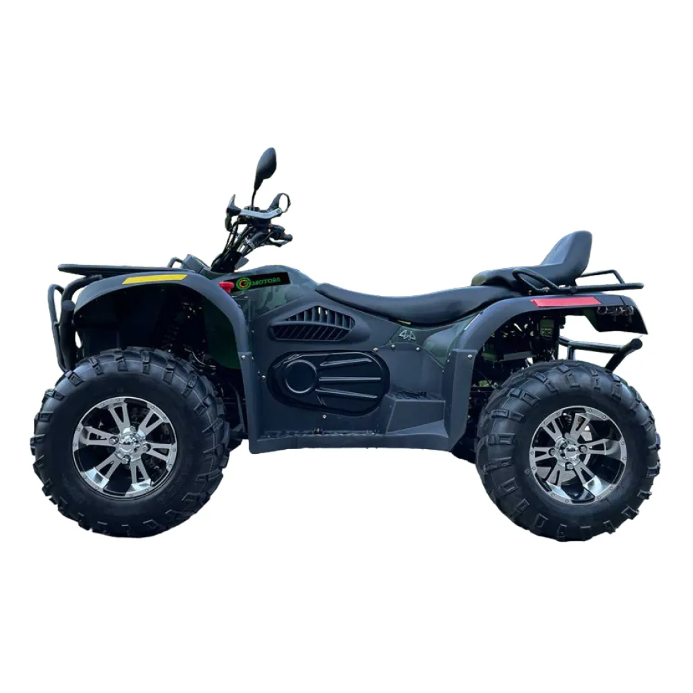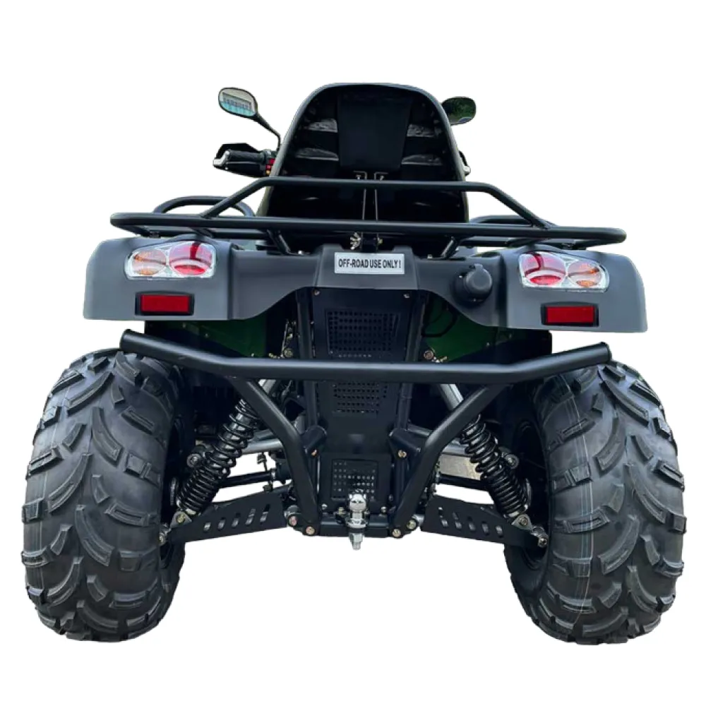 Черный цвет квадроцикла придаёт ему защитный вид и позволяет скрываться на ночных маршрутах. Квадроцикл также имеет систему блокировки, которая обеспечивает безопасность и защиту ваших личных вещей.