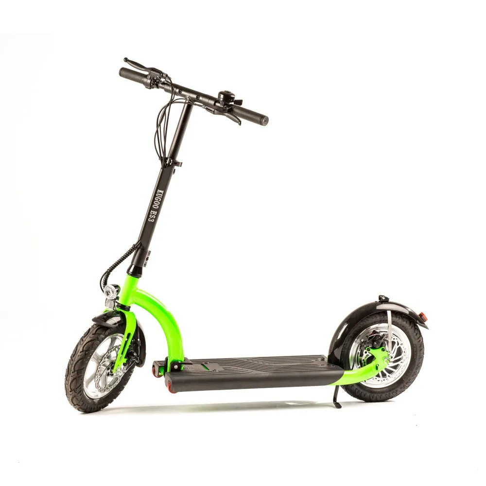Электросамокат Kugoo ES3 это отличное средство для передвижения. Он имеет прочную складную конструкцию, в сложенном состоянии его габариты уменьшаются в двое. Рулевая стойка отпускается к деке, соединяясь с креплением на заднем колесе. Агрегат предназначен для городских дорог, жесткая передняя вилка. В качестве амортизатора выступают 12 дюймовые накаченные колеса.