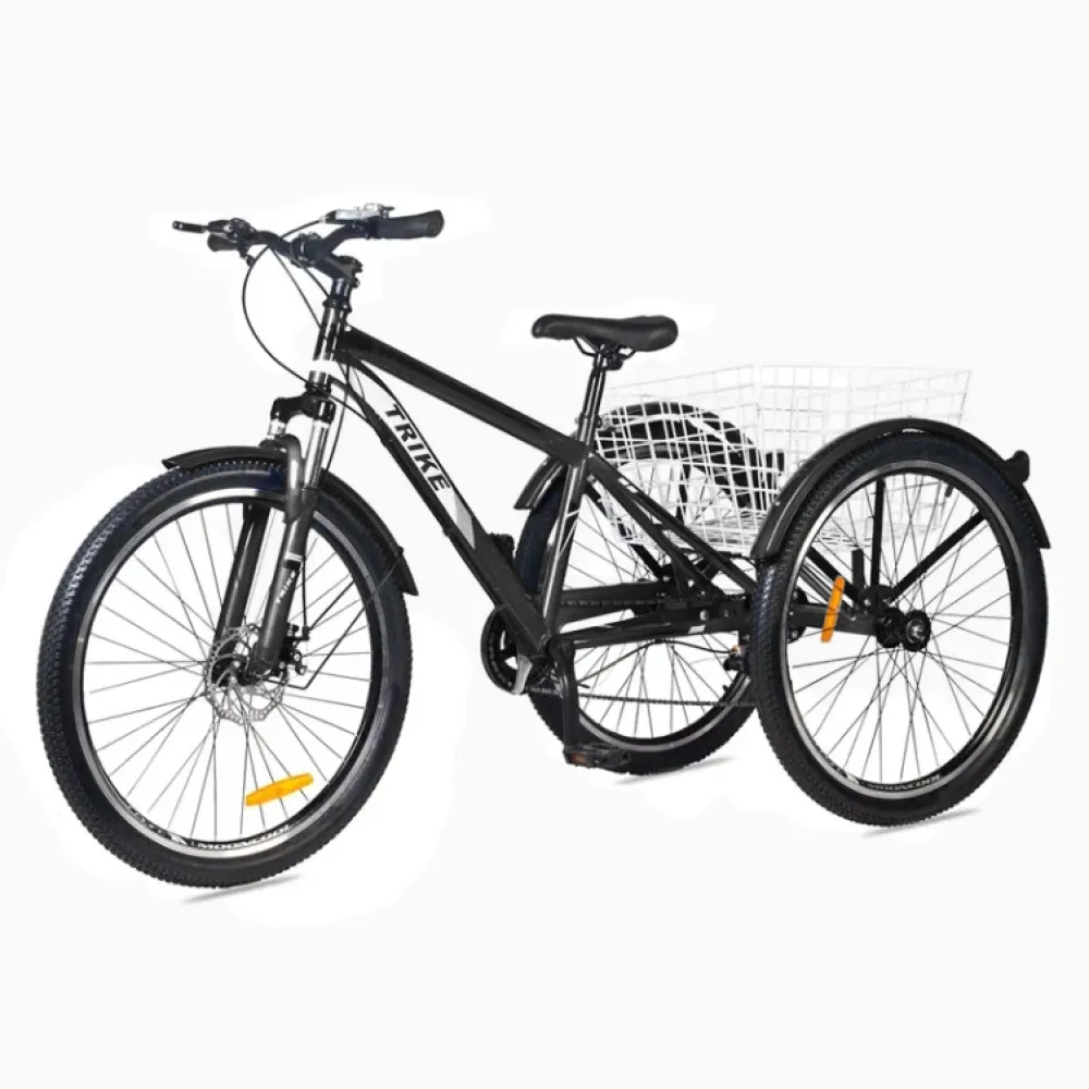 Трицикл имеет вес 29,7 кг, рассчитан на грузоподъемность 180 кг, предназначен для пользователей с ростовыми параметрами 178-185 см. 26-дюймовые колеса, напоминающие внедорожные отлично сцепляются с разными видами покрытия, накатистые и устойчивые. Мягкое седло увеличивает степень комфорта райдера, минимизирует нагрузку на позвоночник, исключает появление усталости.
